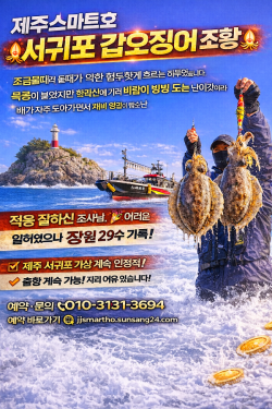 ???? 제주스마트호 1월 23일 한림 갑오징어 조황기상 영향으로 파도가 높은 하루였습니다.초보 조사님들께는 다소 힘든 여건이었으나,그만큼 갑오징어 사이즈는 확실히 커진 모습을 보여준 하루였습니다.파도와 바람으로 낚시 여건은 쉽지 않았지만포인트에서는 왕갑이급 갑오징어가 다수 확인되었고,묵직한 손맛과 확실한 무게감을 느낄 수 있었습니다.최근 갑오징어가 점점 커지는 흐름이라기상만 안정되면 조황 상승 기대감이 매우 큰 상황입니다.현재 한림 서부권 기상이 계속 좋지 않아1월 24일부터는 서귀포항으로 출항지 이동하여 진행합니다.서귀포권에서도 갑오징어 소식이 이어지고 있어보다 안정적인 출조가 가능할 것으로 보입니다.1월 말까지 기상 상황을 지켜본 후한림항 복귀 여부를 다시 판단할 예정입니다.안전하고 즐거운 출조를 위해 항상 최선을 다하겠습니다.???? 예약 및 문의☎ 010-3131-3694???? 예약 홈페이지???? https://jjsmartho.sunsang24.com/ship/schedule✅ 해시태그#제주스마트호 #제주선상낚시 #제주배낚시#한림갑오징어 #서귀포갑오징어 #갑오징어조황#왕갑오징어 #갑오징어시즌#1월갑오징어 #겨울갑오징어#기상악화 #파도있는날#초보난이도상 #경험자추천#서귀포출항 #출항지이동#제주낚시 #제주바다 #선상에깅 ======= 제주 스마트호 예약안내 ======== 스마트호는 21년 건조된 9.77 낚시전용선으로 최신의 장비와 편의시설로 조사님들을 모시겠습니다. 정확한 데이터를 기반으로 포인트 진입이 가능합니다. 그래서 스/마/트/호 입니다. 제주 스마트호만의 조황을 확인해 보세요~! ^^ ■ 문의전화 : 010-3131-3694 ■ 오시는길 : 한치, 갈치 : 제주시 건입동 918-57 제주항2부두좌측 어선정박지 http://naver.me/xB4oMF8u 갑오징어 : 제주특별자치도 제주시 한림읍 한수리 906-15 한림항 제주특별자치도 서귀포시 안덕면 사계항 http://naver.me/5peDJAjt 제주특별자치도 서귀포시 서귀동 758-4 서귀포항 여객선터미날 ■ 실시간 예약 바로가기 : http://jjsmartho.sunsang24.com ■ 계좌안내 : 수협 / 010-3131-3694-0 / 강양수 기업 / 010-3131-3694 / 강양수 ■ 네이버 제주 항공권 조회하기 : https://store.naver.com/flights