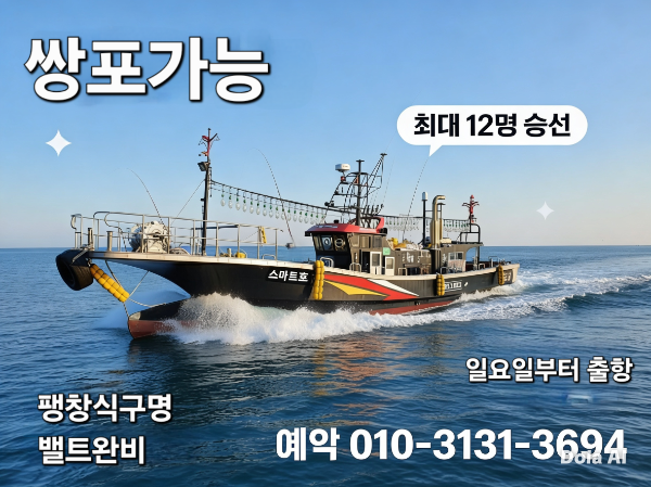 ![]() ???? [04/22] 제주스마트호 보슬비 속 왕갑이 파티! 초보 12수 & 장원 33수 달성 (쌍포 가능 / 일요일부터 정상출항) 제주스마트호 4월 22일(수) 모슬포항 갑오징어 조황 안녕하세요, 제주스마트호입니다! ⚓ 오늘은 소수 정예 인원과 함께 모슬포항에서 보슬비를 뚫고 출항했습니다. 궂은 날씨에도 굴하지 않고 열정을 보여주신 조사님들 덕분에 기분 좋은 조과를 올렸습니다! ???? 조황 요약: 포인트 도착하자마자 왕갑이들이 꾸준하게 얼굴을 보여주었습니다. ???? 초보 조사님 대활약: 오늘 낚시를 처음 하시는 두 분도 걱정 마세요! 오늘 처음 오신 분들도 각각 12수씩 묵직하게 손맛 보셨습니다. ???? 오늘의 장원: 실력 발휘 제대로 해주신 조사님, 총 33수로 기분 좋게 마무리하셨습니다! ???? ???? 현장 분위기: 비가 와서 걱정했는데, 갑오징어 입질이 확실히 살아나고 있어 넣으면 나오는 즐거운 낚시였습니다. ???? 제주스마트호만의 특전 ✅ 낚시대 쌍포 가능! (더욱 강력한 손맛을 원하시는 조사님들 환영합니다.) ✅ 쾌적한 환경: 최대 승선 인원 12명으로 여유로운 낚시 공간 보장! ???? 출항 안내 (기상 공지) 내일부터는 기상 악화로 인해 잠시 쉬어갑니다. ✅ 이번 주 일요일(4/26)부터 기상 호전, 정상 출항 확정! ✅ 갑이 입질 살아나고 있으니, 물때 좋은 일요일 예약 서둘러 주세요! ???? 선비 및 제공 서비스 - 선비: 일반 13만원(무료 픽업) / 도민 12만원 - 제공: 점심 식사, 컵라면, 물, 커피 - 무료 대여: 팽창식 구명벨트 완비 - 편의: 공항 픽업/드랍 서비스 제공 ???? 예약 문의 010-3131-3694 (부재 시 문자 남겨주세요!) ???? 실시간 예약 사이트 ???? 제주스마트호 네이버 밴드 [해시태그] #제주스마트호 #모슬포항 #서귀포갑오징어 #제주갑오징어 #왕갑이 #갑오징어조황 #제주배낚시 #제주선상낚시 #장원33수 #초보환영 #제주도낚시 #낚시쌍포 #구명벨트대여 ![]() ![]() ![]() ![]() ![]() ![]() ![]() ![]() ![]() ![]() ![]() ![]()